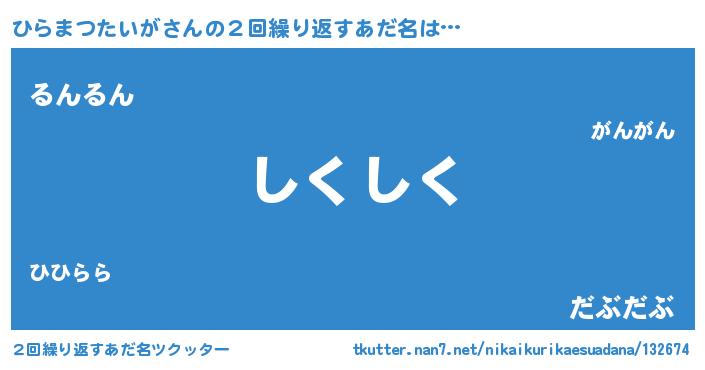 | ヘコむあだ名 | 『ひらまつたいが(笑)』『牛乳』 |