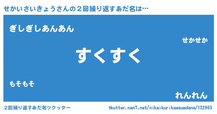 | ヘコむあだ名 | 『せかいさいきょう(遠い目)』『せかにゅー』 |