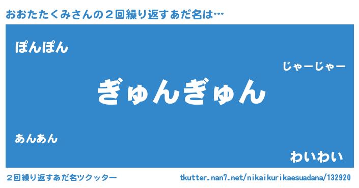 | 意味不明あだ名 | 『永久保存おおたたくみ』 |