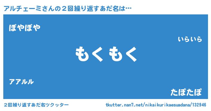 | 意味不明あだ名 | 『自称アルチェーミ』 |