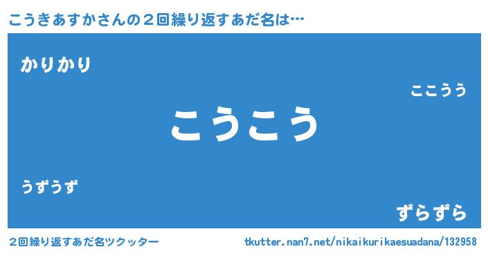 | ヘコむあだ名 | 『こうもー』『こうきあすか(爆)』 |