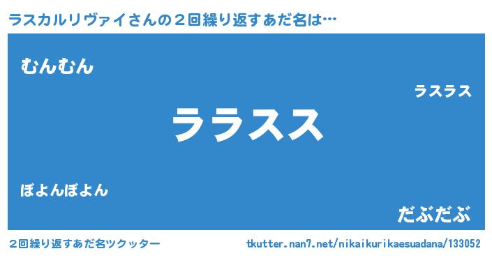 | 欧米人風あだ名 | 『ラスカルリヴァイクリステル』 |