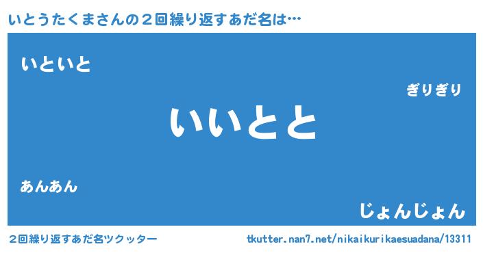 | 意味不明あだ名 | 『いとうたくまフォーエバー』 |