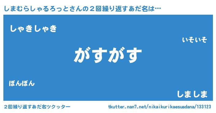 | 胡散臭い通販商品みたいなあだ名 | 『絶対に幸福をもたらす水素水…その名も「しまむらしゃるろっと」』 |