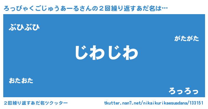 | 意味不明あだ名 | 『住所不定無職ろっぴゃくごじゅうあーる(93歳)』 |