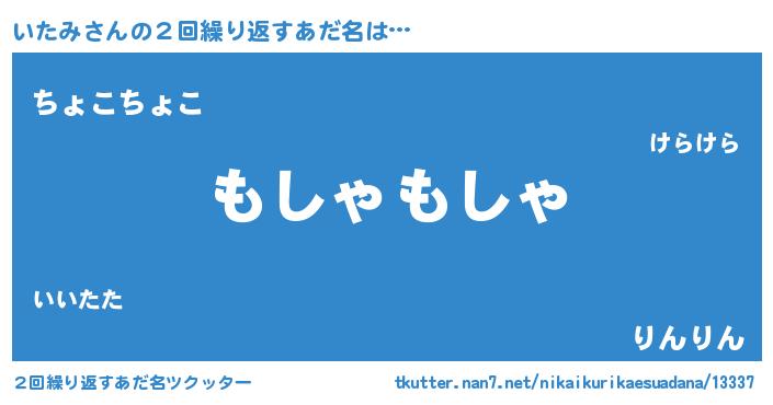 | 男性向けラノベタイトル風あだ名 | 『Re:いたみから始める異世界生活』 |