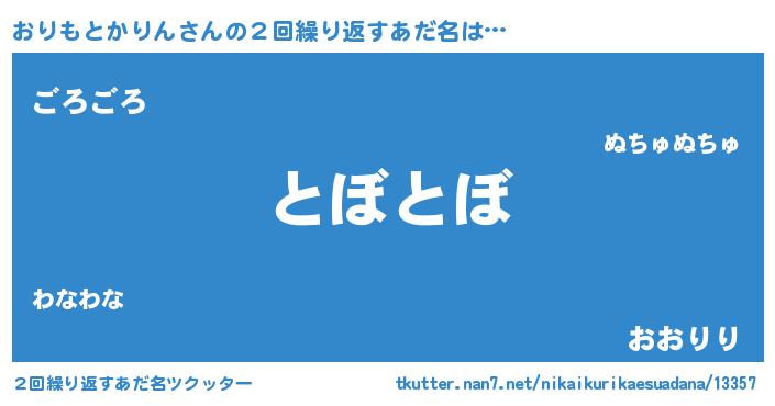 | 欧米人風あだ名 | 『おりもとかりん・ステッグマイヤー』 |