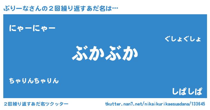 | ヒーロー風カッコイイあだ名 | 『正義の使者ぶりーな』『銀牙騎士ブリ』 |