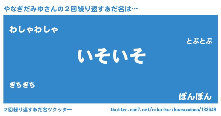 | ヘコむあだ名 | 『やなっぺ』『やなぎだみゆ(爆)』 |