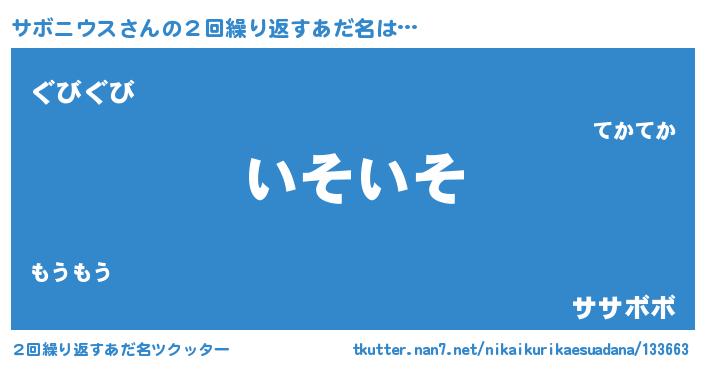 | 可愛いあだ名 | 『サっボぃー』『サボニウスママ』 |