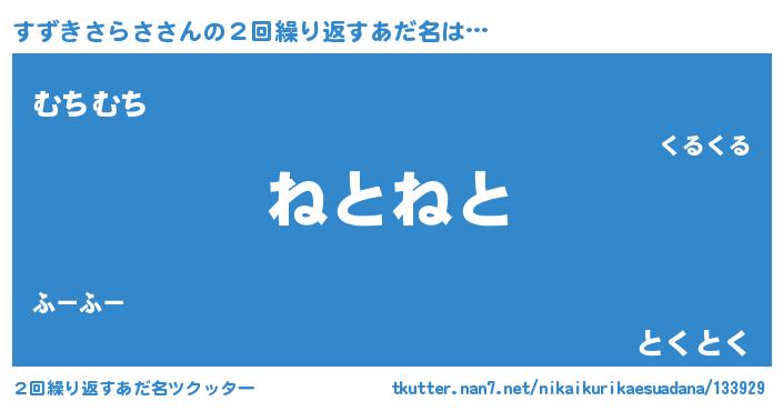 | 欧米人風あだ名 | 『ウサインすずきさらさ』 |