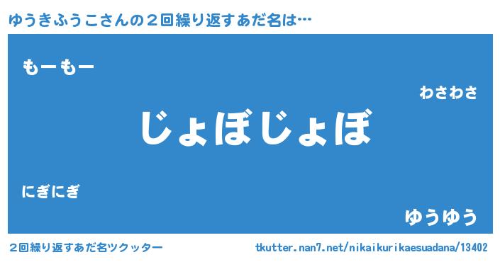 | ピコ太郎風あだ名 | 『ユコ史郎』『ユウ八郎』『ユユ太郎』 |