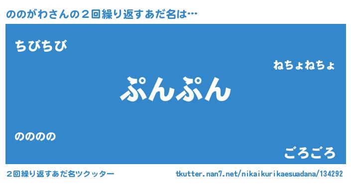 | ヘコむあだ名 | 『ののがわ(苦笑)』『ののっ子』 |