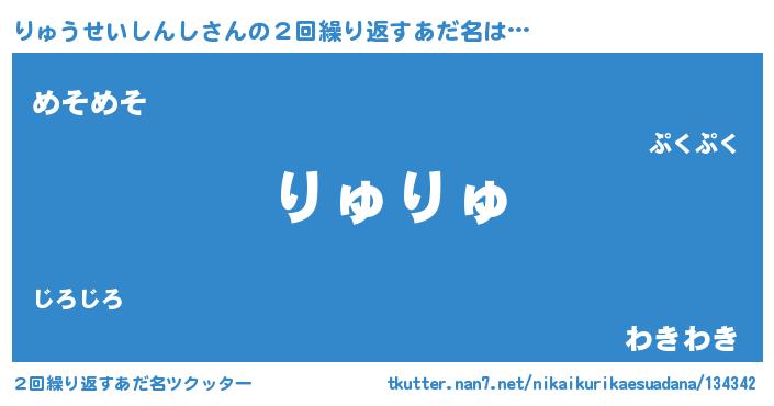 | 男性向けラノベタイトル風あだ名 | 『りゅうせいしんしの憂鬱』 |