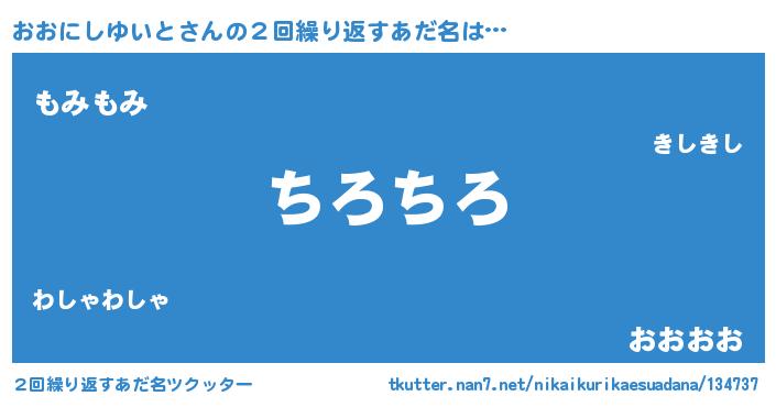 | 意味不明あだ名 | 『自称おおにしゆいと』 |