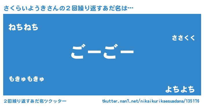 | ヘコむあだ名 | 『さくらいようき(遠い目)』『さくっぺ』 |