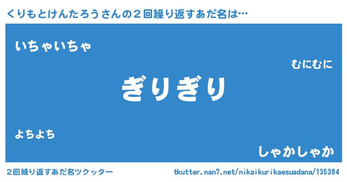 | ヘコむあだ名 | 『くりもとけんたろう(笑)』『くりぷりん』 |