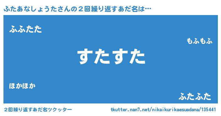 | 男性向けラノベタイトル風あだ名 | 『この素晴らしい世界にふたあなしょうたを!』 |