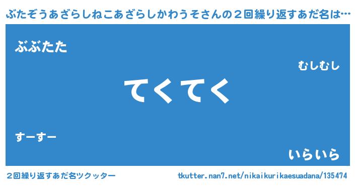 | 意味不明あだ名 | 『ぶたぞうあざらしねこあざらしかわうそフォーエバー』 |