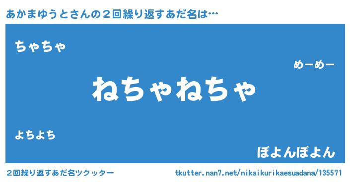 | 男性向けラノベタイトル風あだ名 | 『あかまゆうとの嫁は女の子じゃないと思った?』 |