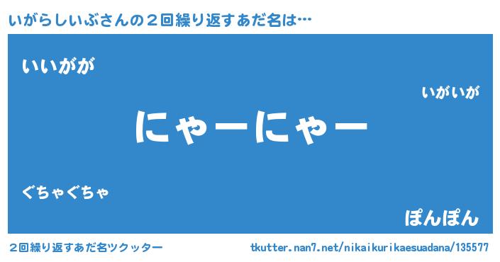 | 男性向けラノベタイトル風あだ名 | 『いがらしいぶに滅ぼされるだけの簡単なお仕事です』 |