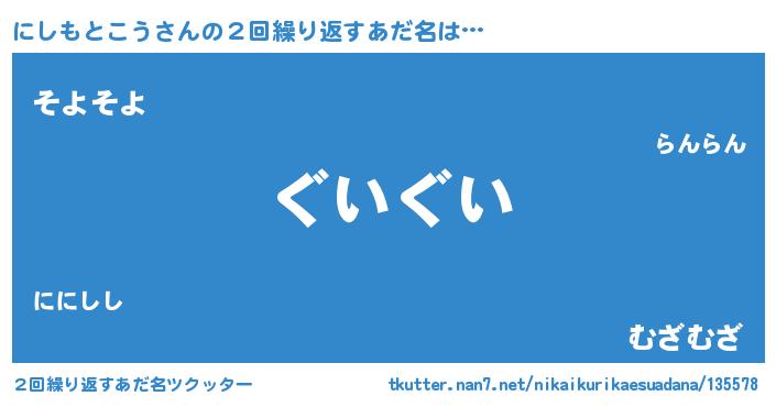 | ヘコむあだ名 | 『にしもとこう(遠い目)』『豆乳』 |