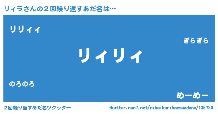 | 男性向けラノベタイトル風あだ名 | 『リィラの憂鬱』『魔法科高校のリィラ』 |