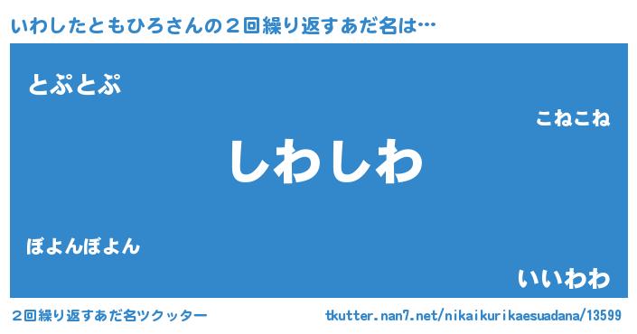 | 男性向けラノベタイトル風あだ名 | 『この素晴らしい世界にいわしたともひろを!』 |