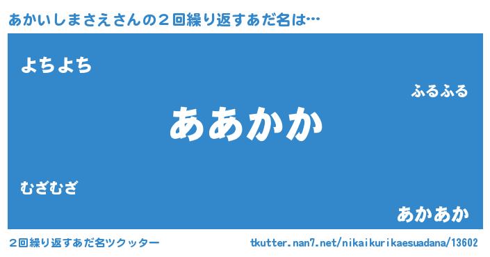 | 意味不明あだ名 | 『あかいしまさえフォーエバー』 |