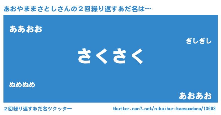 | 意味不明あだ名 | 『住所不定無職あおやままさとし(56歳)』 |