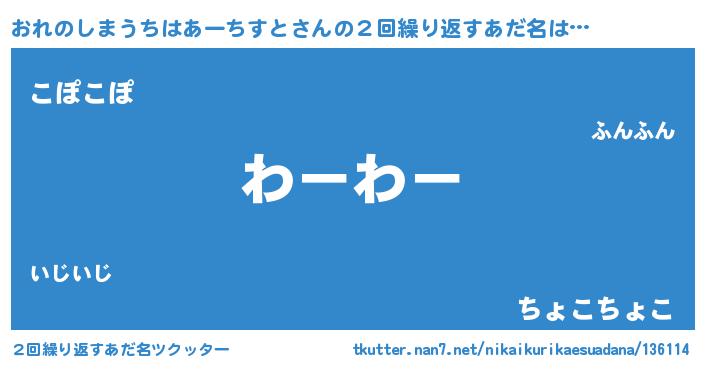 | 欧米人風あだ名 | 『トリンドルおれのしまうちはあーちすと』 |