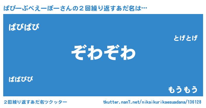 | 男性向けラノベタイトル風あだ名 | 『この素晴らしい世界にぱぴーぷぺえーぽーを!』 |
