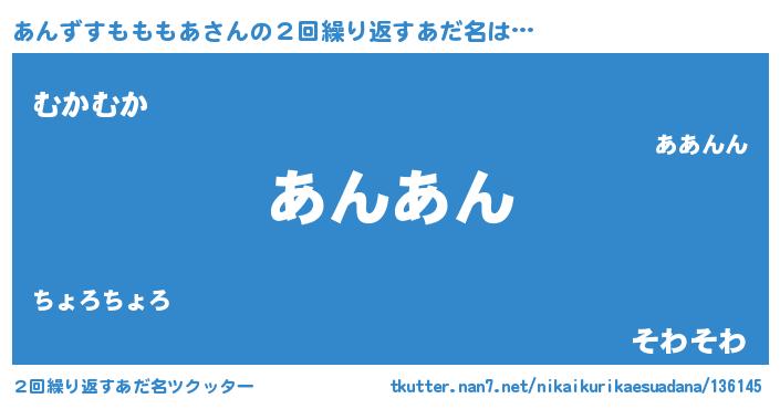| 欧米人風あだ名 | 『アンジェラ・あんずすもももあ』 |