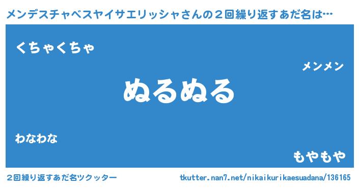 | 男性向けラノベタイトル風あだ名 | 『メンデスチャベスヤイサエリッシャの嫁は女の子じゃないと思った?』 |