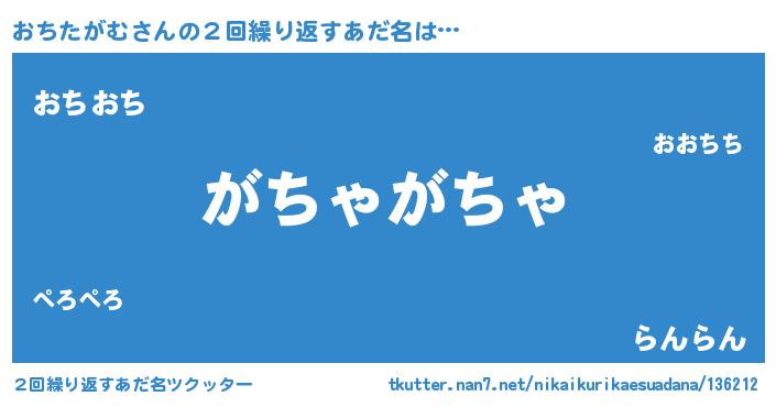 | 男性向けラノベタイトル風あだ名 | 『おちたがむという概念が存在しない退屈な世界 』 |