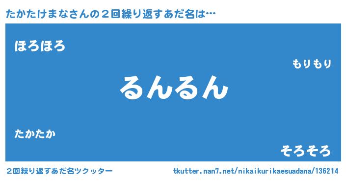 | 肩書あだ名 | 『たかたけまな少将』『たかたけまな助手』 |