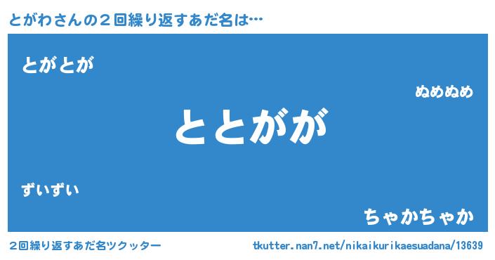 | ポケモン風あだ名 | 『トガワダネ』『トガチュウ』 |