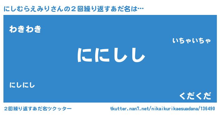 | 欧米人風あだ名 | 『にしむらえみりクリステル』 |