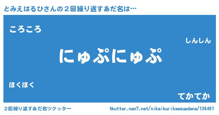 | ヘコむあだ名 | 『とみっぺ』『とみえはるひ(笑)』 |
