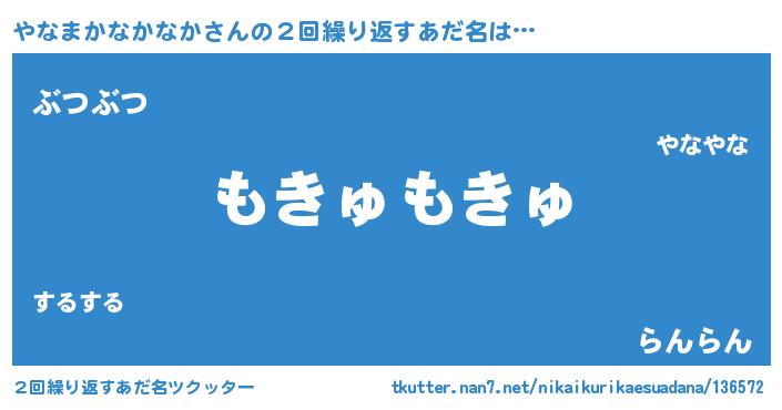 | 男性向けラノベタイトル風あだ名 | 『Re:やなまかなかなかから始める異世界生活』 |