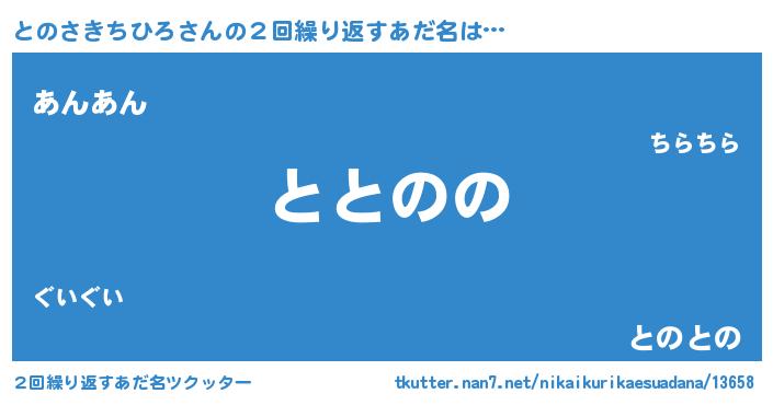 | ポケモン風あだ名 | 『トノサダネ』『ヒトノサキチヒロ』 |