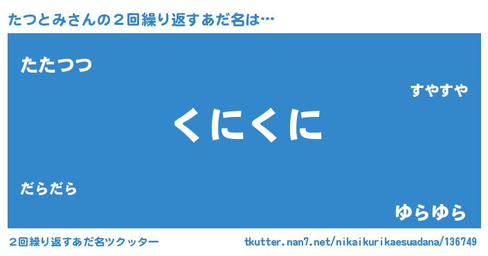 | ヒーロー風カッコイイあだ名 | 『ネオタツトミ』『ウルトラたつとみマン』 |