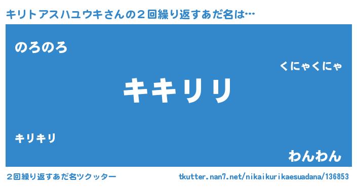 | ポケモン風あだ名 | 『キリトダネ』『ヒキリトアスハユウキ』 |