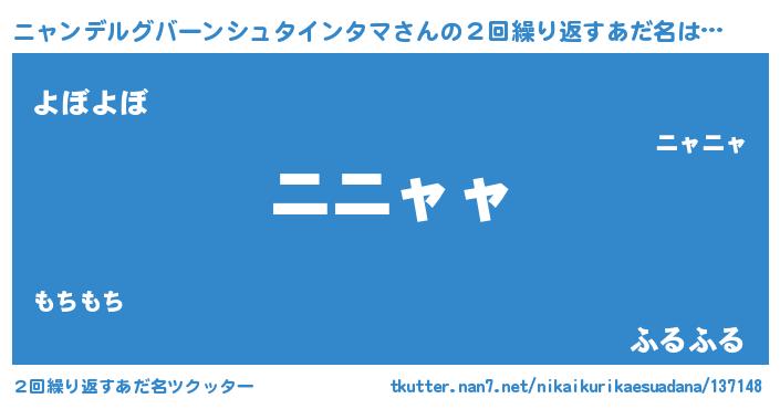 | ファンタジー風あだ名 | 『エターナルニャンデルグバーンシュタインタマー』 |