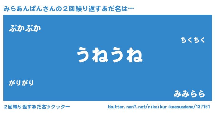 | ヘコむあだ名 | 『みらっちょ』『つくし』 |