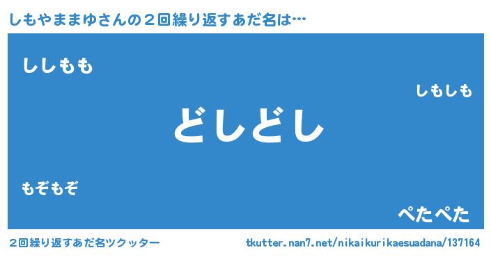 | 欧米人風あだ名 | 『しもやままゆ・ステッグマイヤー』 |