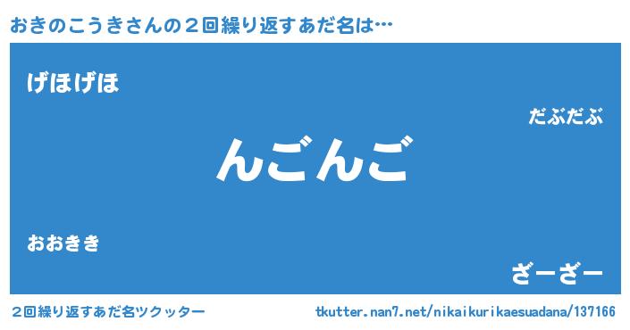 | ヘコむあだ名 | 『おきのこうき(遠い目)』『酢こんぶ』 |
