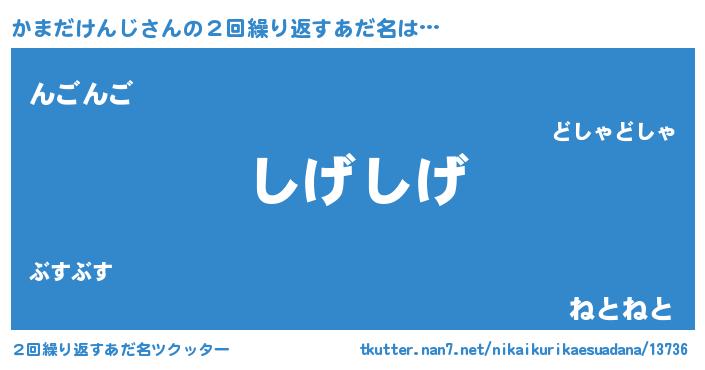| 意味不明あだ名 | 『住所不定無職かまだけんじ(98歳)』 |