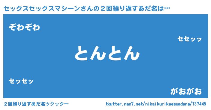 | 男性向けラノベタイトル風あだ名 | 『うちのセックスセックスマシーンが世界を掌握している!』 |