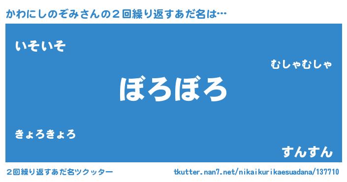 | 肩書あだ名 | 『かわにしのぞみ学校長』 |
